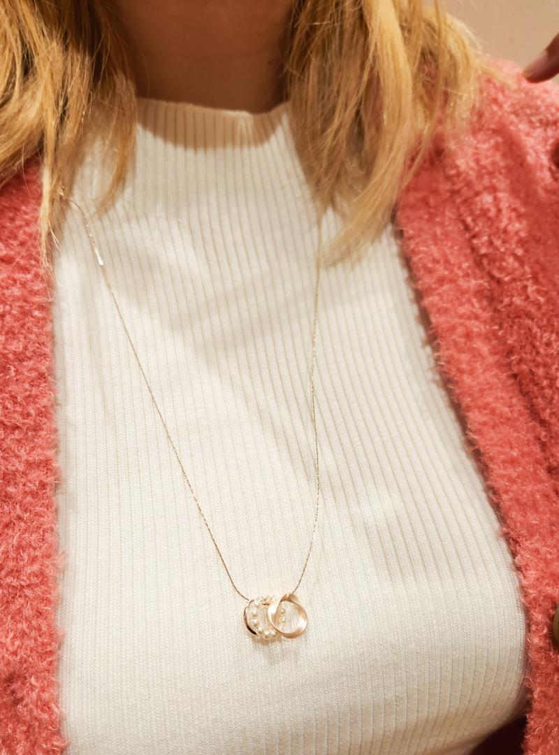フェイクパールミニリングネックレス