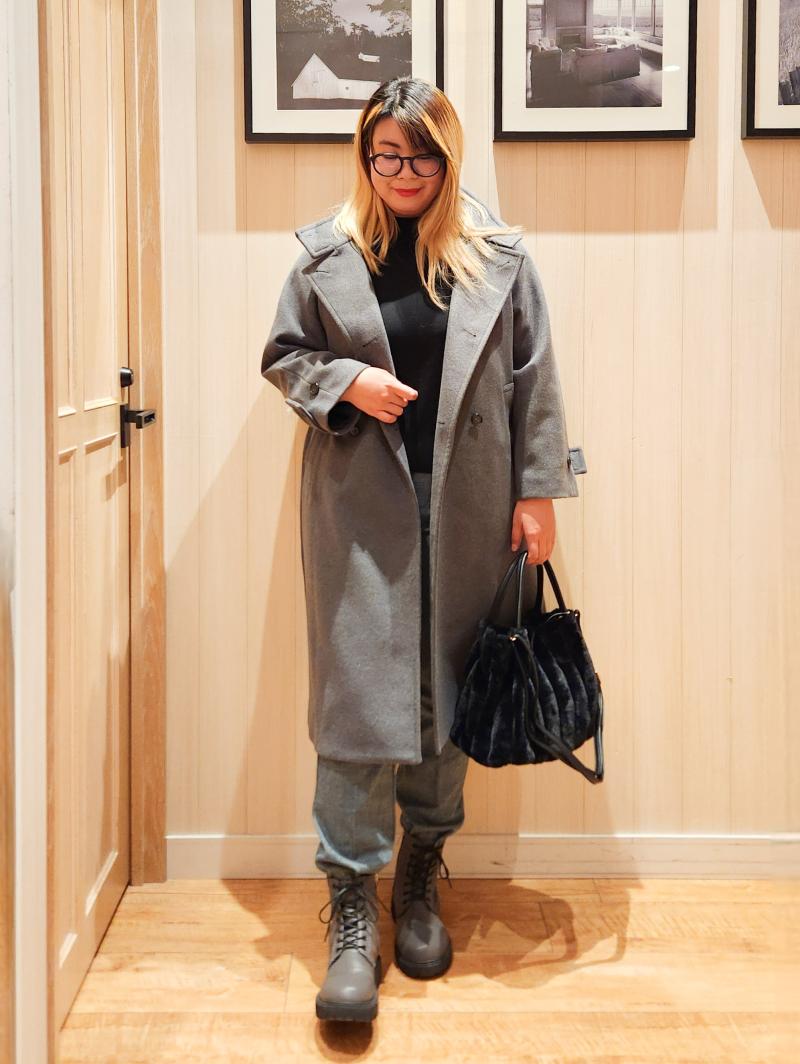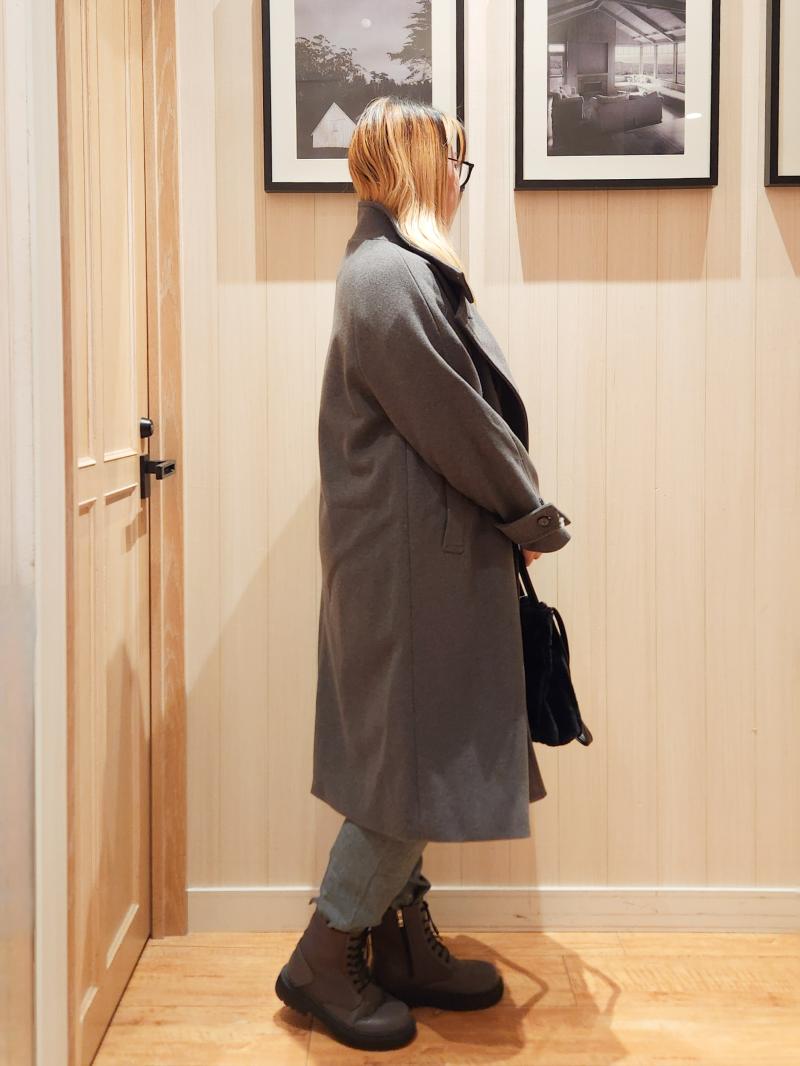 高身長を活かせるロングコートで、体型カバー、縦ラインを強調し、スタイルアップコーデが完成☆