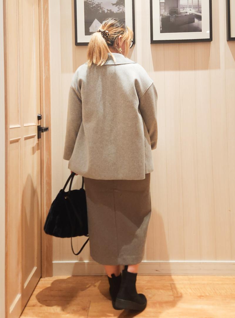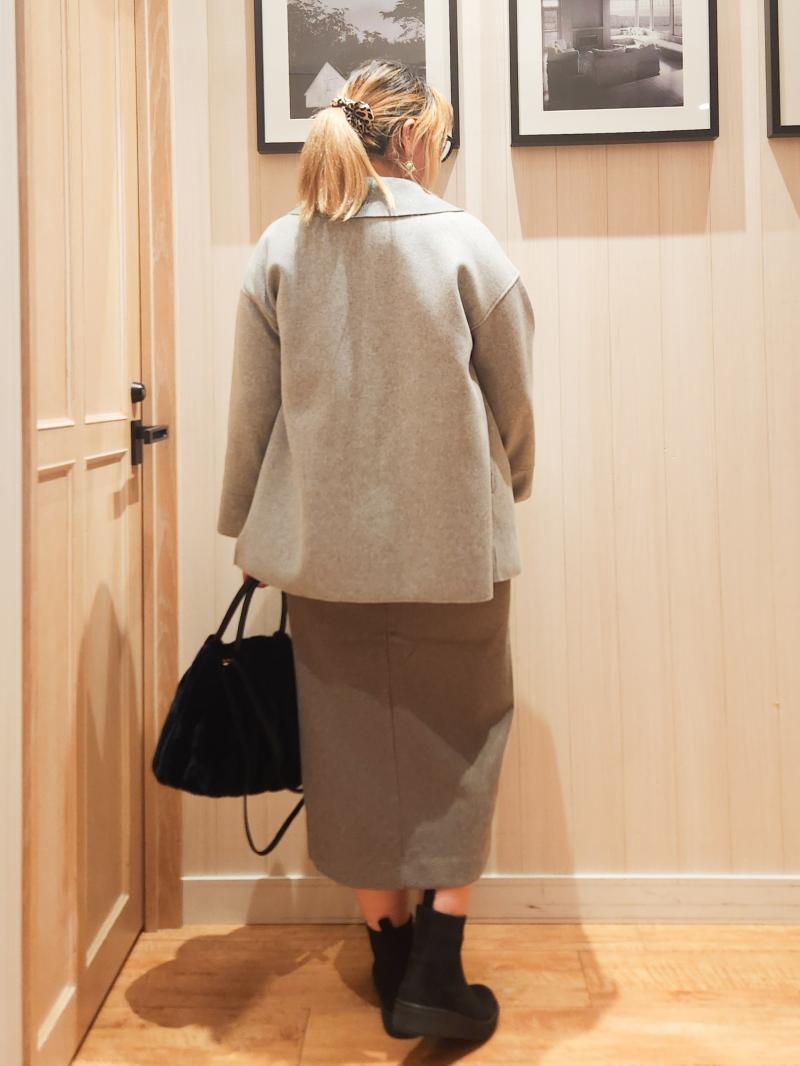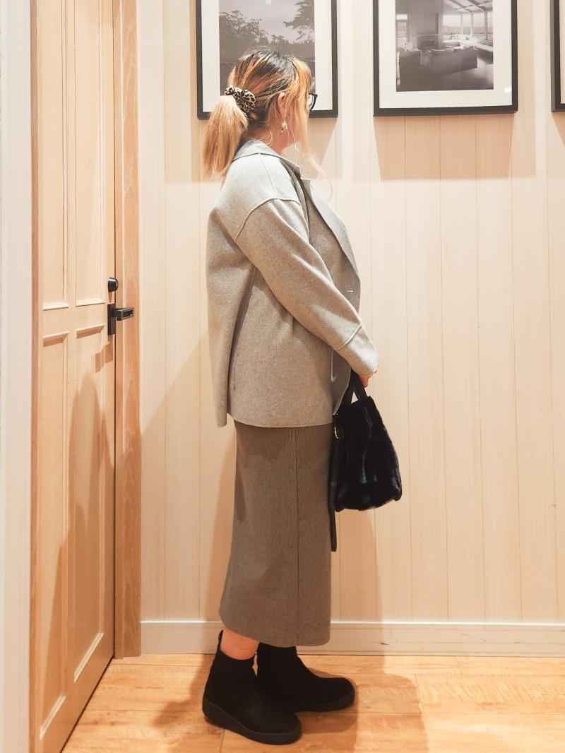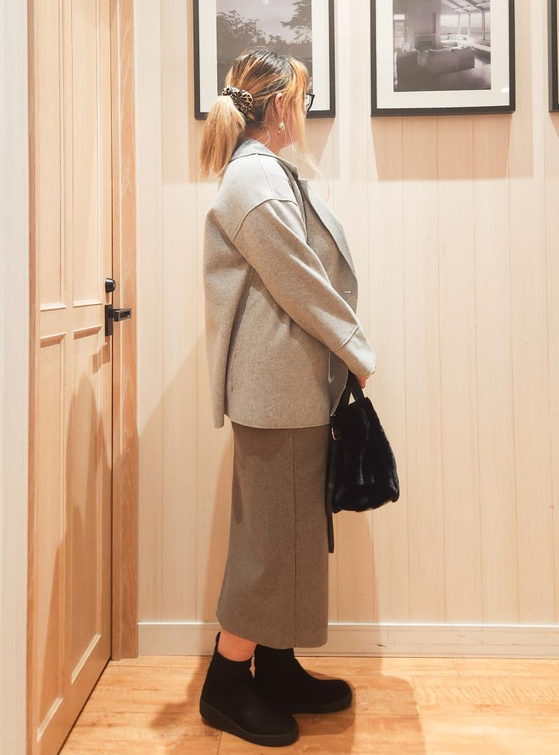 赤いニットが映えるように、他アイテムはベーシックカラーで☆