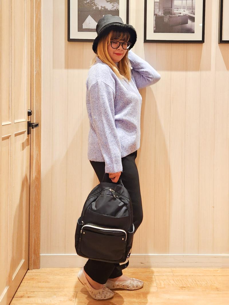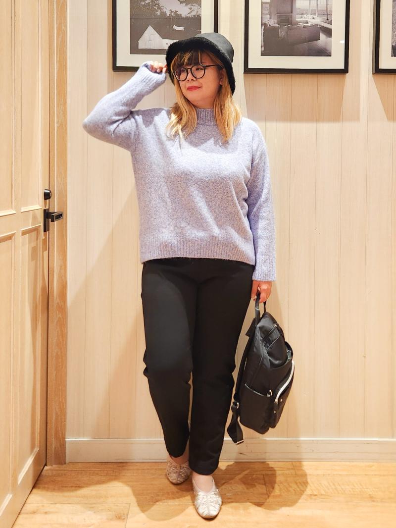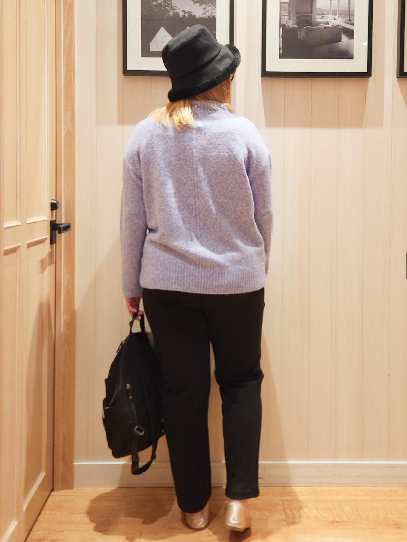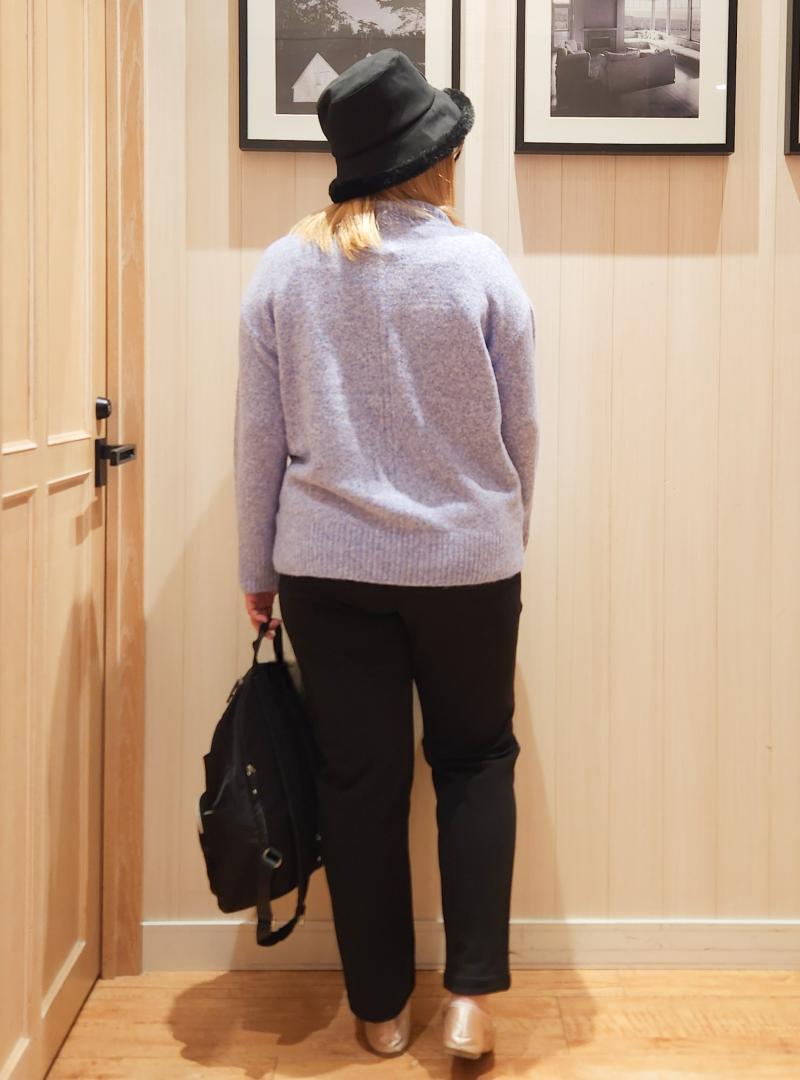 トップスは程よいゆとりがあるので、腰周りのシルエットをカバー。