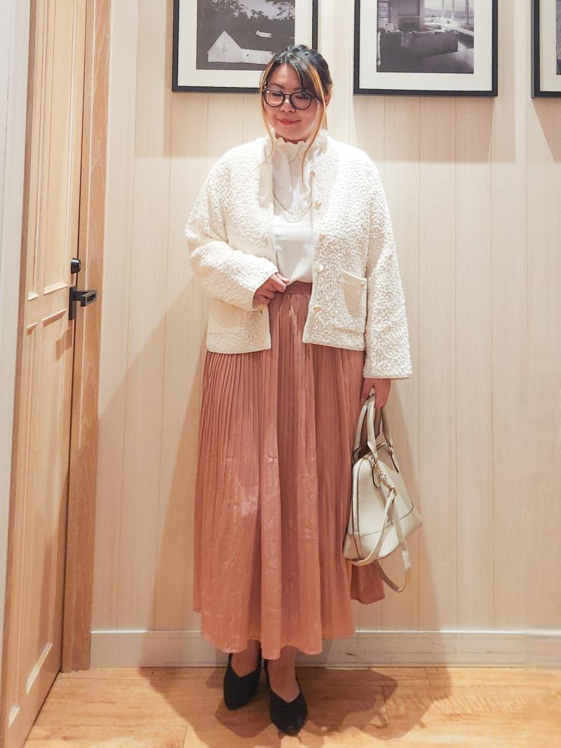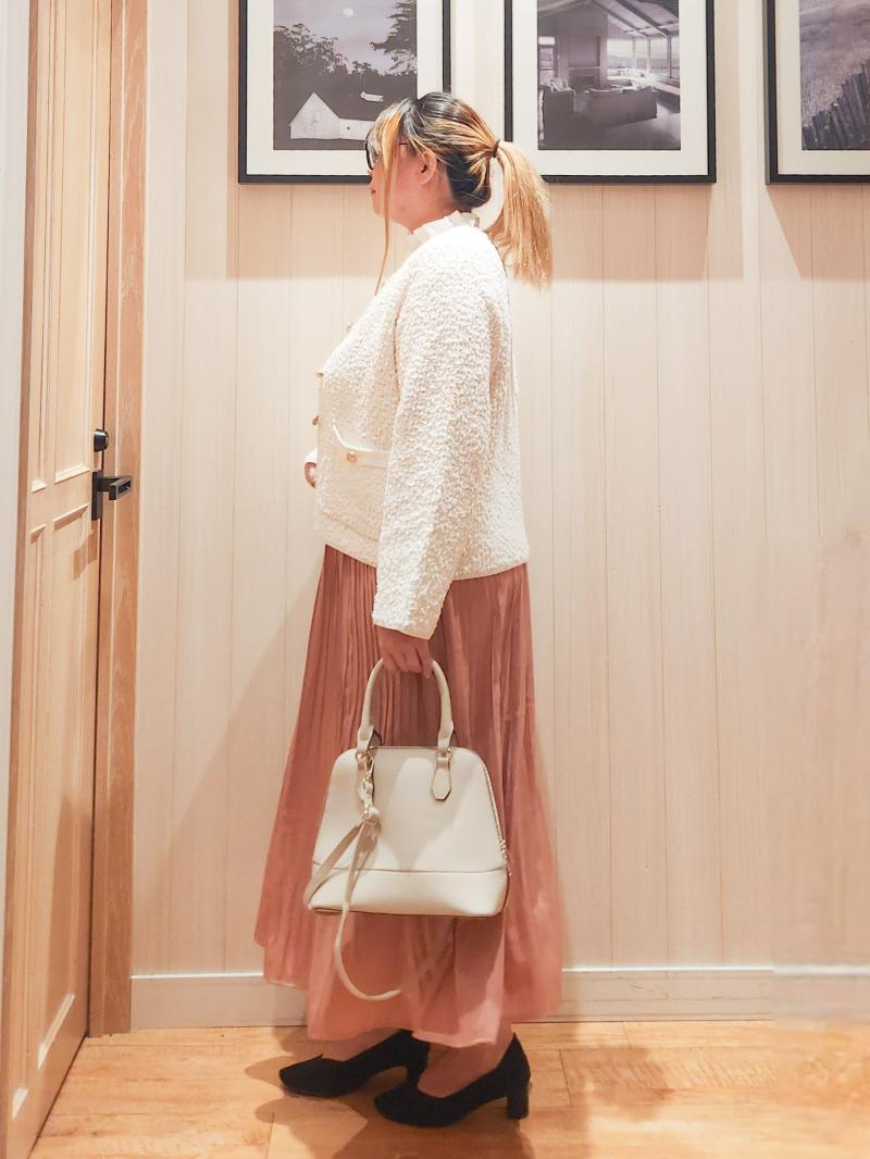 白×ピンクの柔らかい印象のコーデにしてみました。