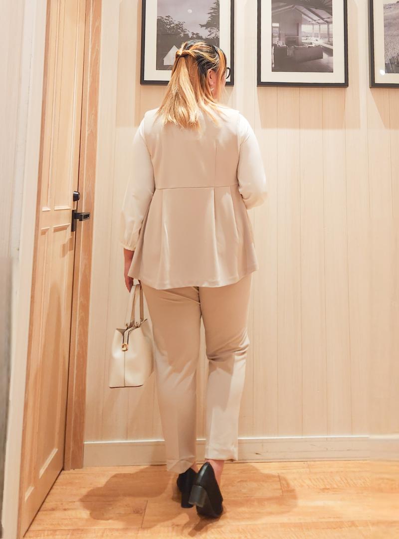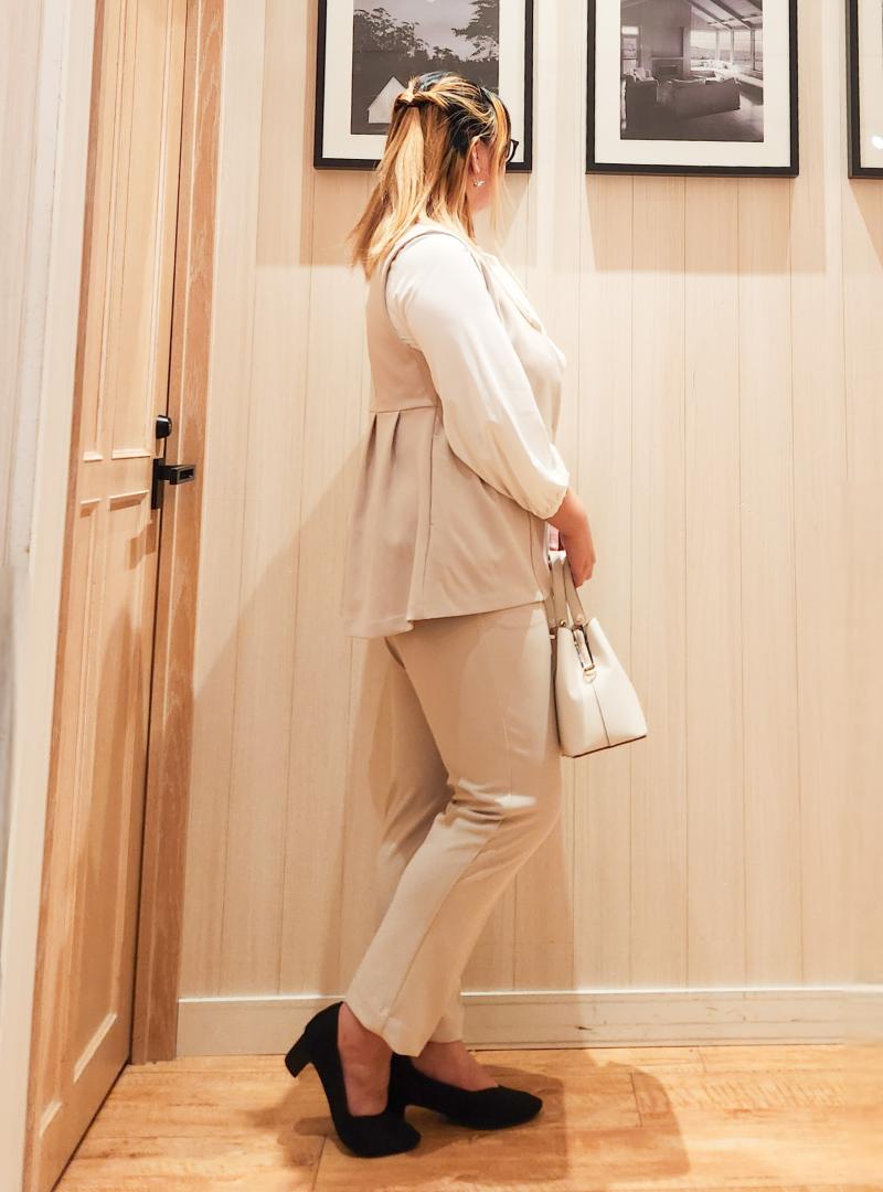 腰周りとお尻はジレでカバーしつつ、クビレが強制的に作れるので、腰の位置を高見せ、脚長効果が叶います♪