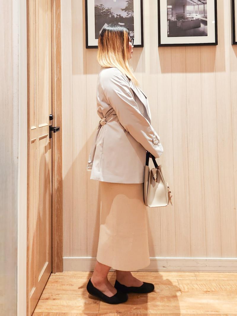 腰周り、お尻、身体のラインはアウターでカバー。