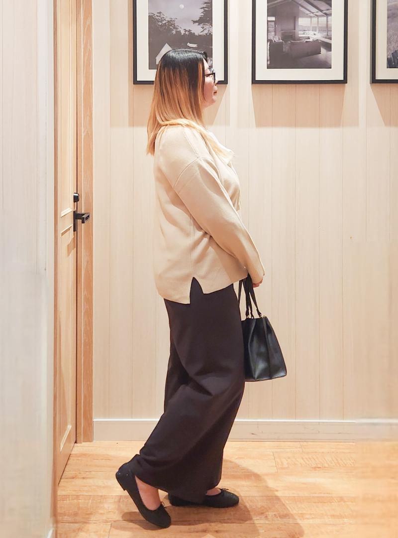 ニット▶程よいゆとりあり。サラッとしたニットで、チクチク感をあまり感じませんでした。