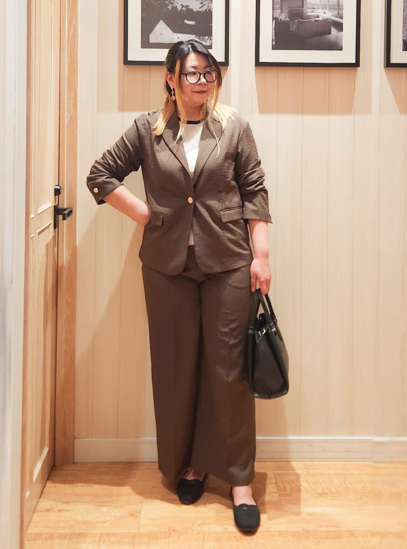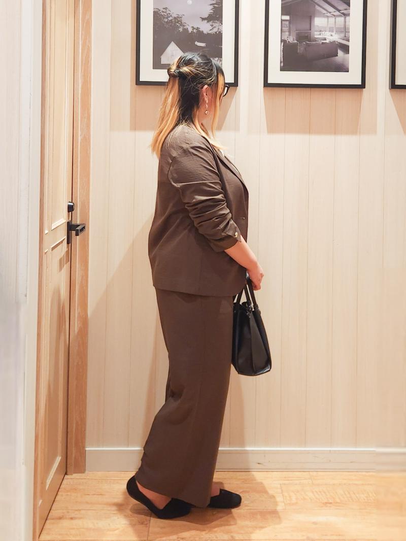 人気のブラウンで組むセットアップコーデ。
