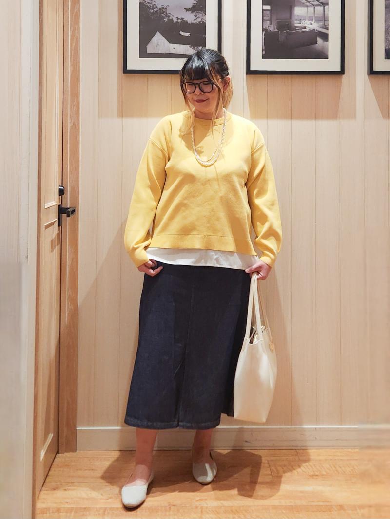 ただ着ただけなコーデですが、ネックレスやレイヤード風なデザインでこなれ感のあるコーデに見せてます。